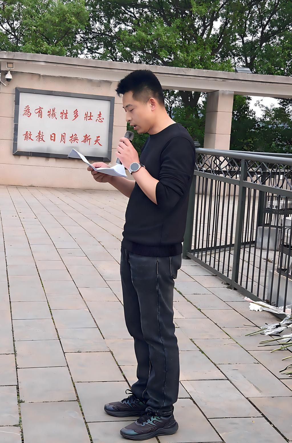 下午16时,全体人员在校内集合整队,党员佩戴党徽,团员佩戴团徽,着装庄重,列队肃立。在党旗、团旗的引领下,步行前往岘山烈士陵园。一路上队形整齐、步伐坚定、神情肃穆,在徒步中感受革命先辈的坚韧意志,用脚步丈量对历史的敬意。