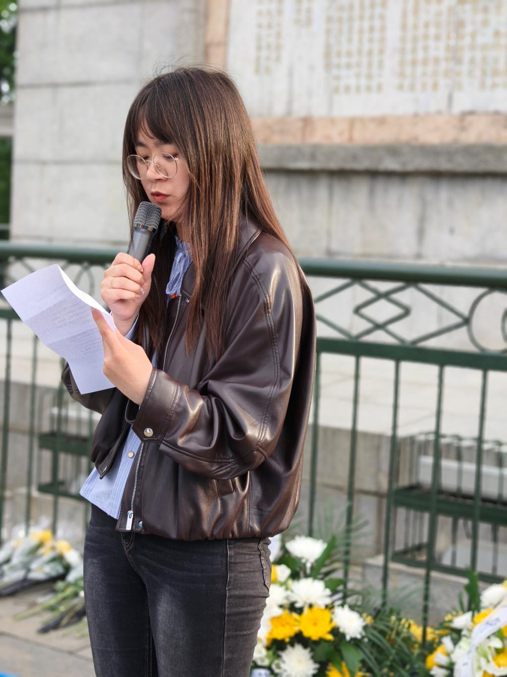 党员代表王谨结合自身军旅经历和校办工作实际,分享了转业不转志、立足平凡岗位践行初心使命的感悟;党员代表郭晓倩在发言中表示,要以革命先烈为榜样,将红色基因融入血脉,化作前行的力量。团员代表在发言中表达了对先辈的崇敬之情,立志传承红色精神,不负青春使命。