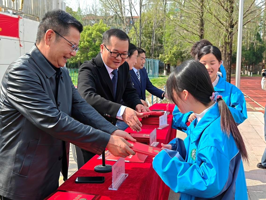 随后举行颁奖仪式,校领导为优秀团干、优秀团员、优秀学生干部、三好学生代表依次颁奖。一份份荣誉,既是对过往努力的肯定,更是对全体学子奋勇争先的激励,校园里掌声阵阵、氛围浓厚。